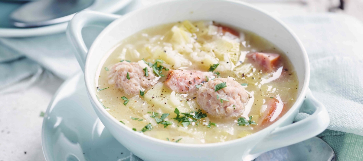 3. Shape small balls from the minced meat and add to the soup. Season with pepper (salt will not be necessary). When the little meatballs float to the surface, the soup is ready. Let it rest for another 10 minutes before serving.